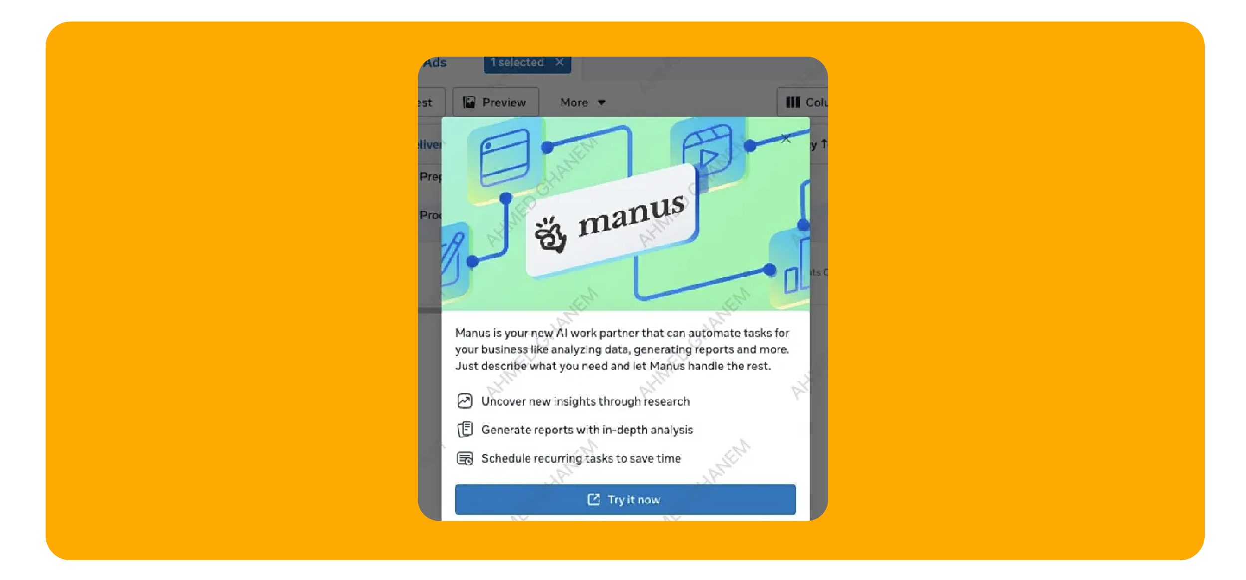 Meta advertisers can already access Manus through the Tools listing in Ads Manager. But Meta is now pushing the feature more visibly, surfacing in-app pop-ups that alert users to the option mid-workflow.