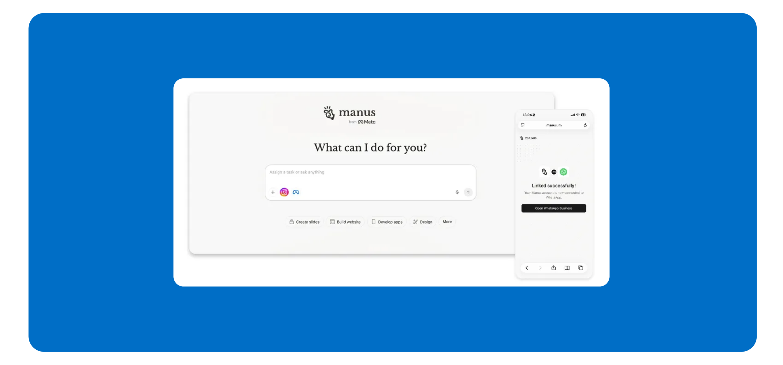 Meta acquired Manus in January, an AI agent company whose tools are built to undertake complex tasks autonomously, including market research, data analysis, and workflow management. That acquisition is now producing its first significant product output, with Manus capabilities integrated directly into Meta Ads Manager, Instagram’s Creator Marketplace, and WhatsApp Business.