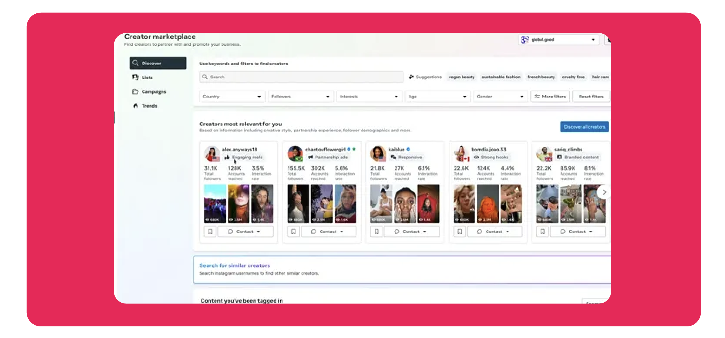 The platform will highlight creators who have tagged your brand in their content or explicitly expressed interest in partnering with you, which sounds simple until you realize that previously, brands were essentially flying blind, reaching out to creators based on demographic data and prayer.