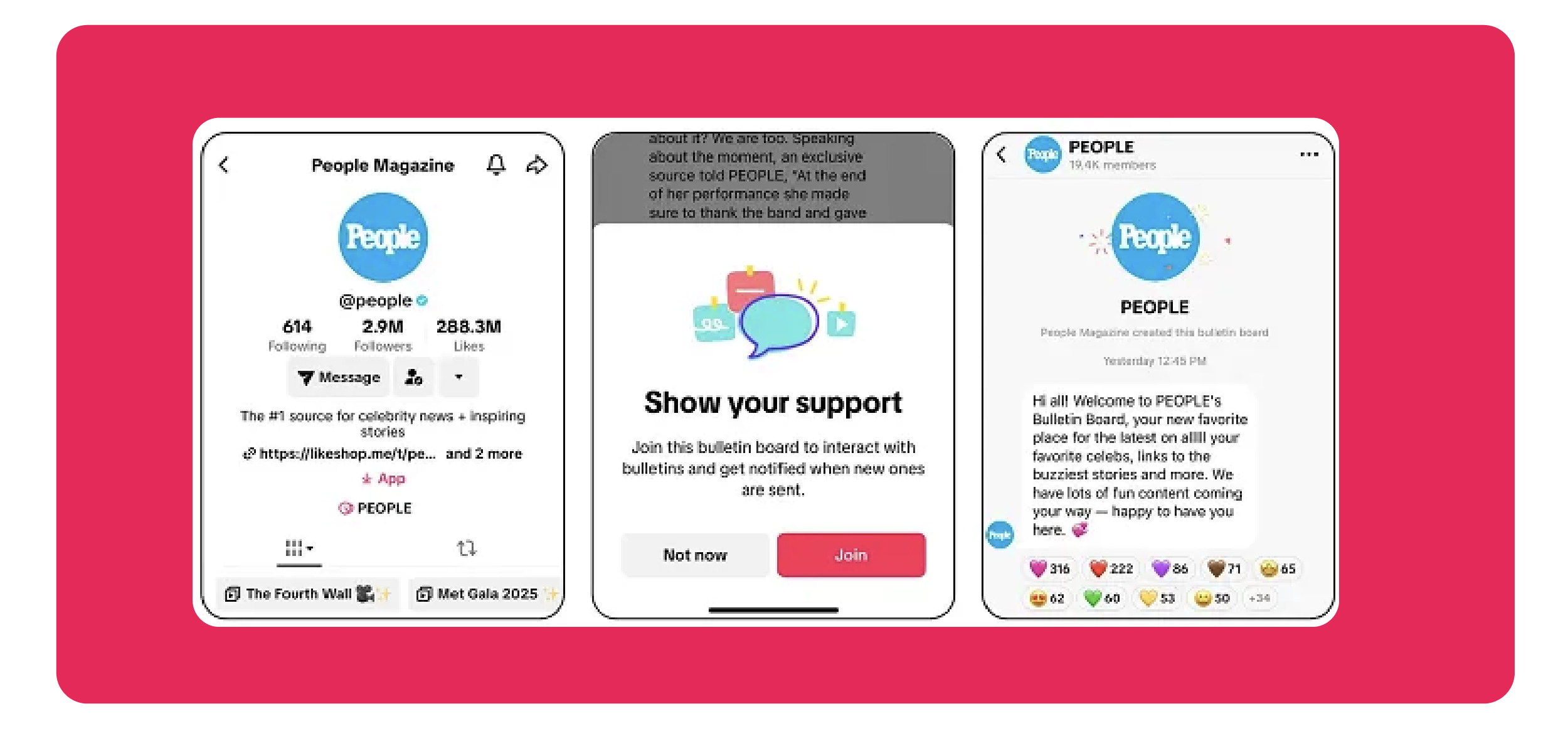 Initially tested with a small group of creators, Bulletin Boards are now being rolled out more widely, giving more users a new way to share updates, event announcements, product drops, or even personal messages in a private, more direct space.